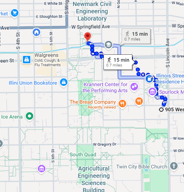 Address: 905 W Oregon Street (Engineering quad 15분 거리, Main quad 10분 내외)