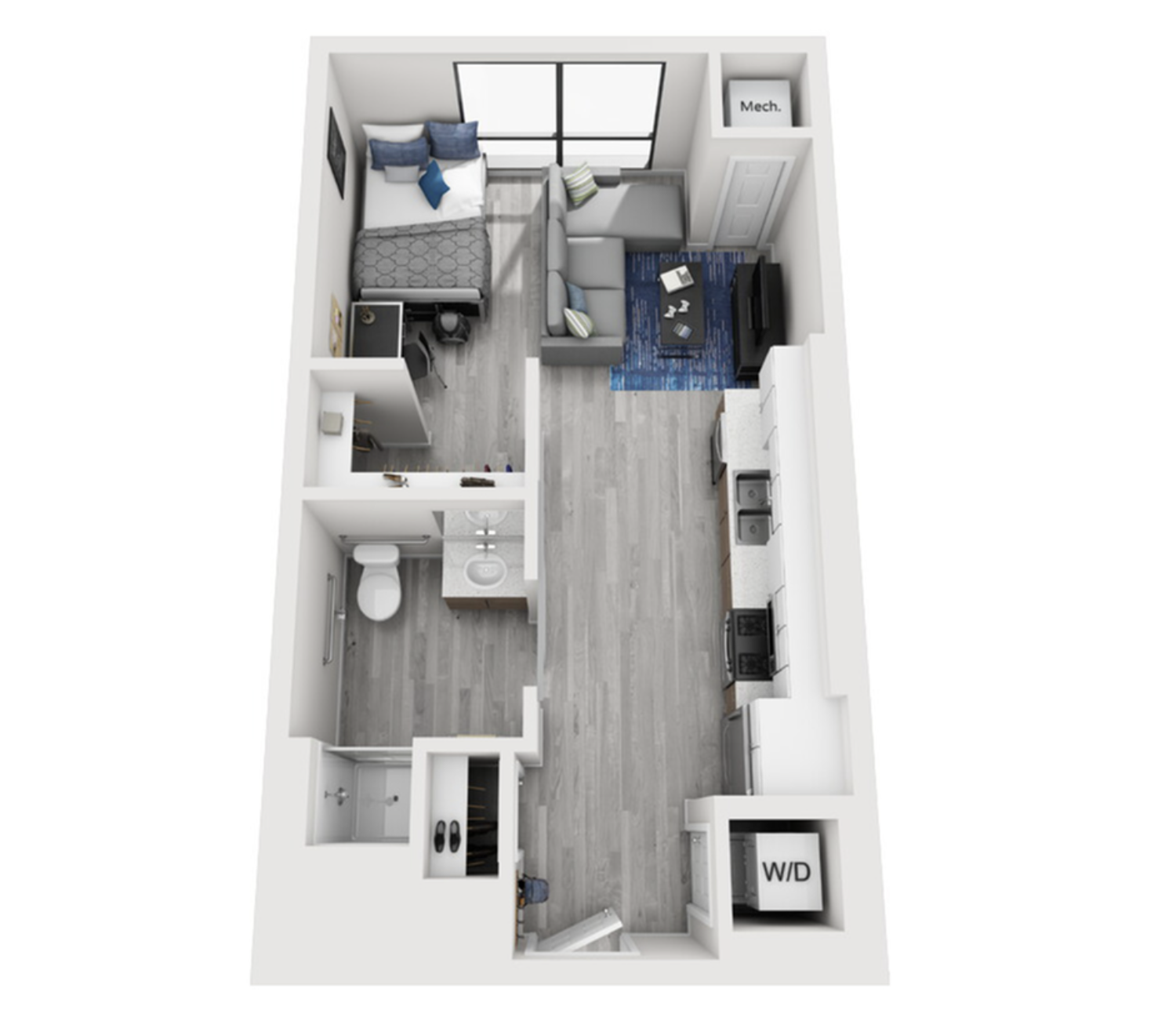 구조: Studio type 1 (furnished / 14층; top floor)