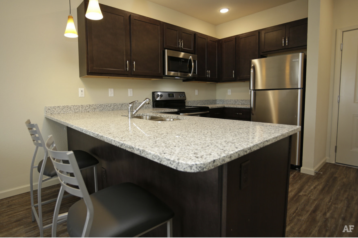 2017년에 지어진 아파트고요. 1B1B 543제곱피트(약 15평)라서 혼자 사시기에 충분히 넓습니다.