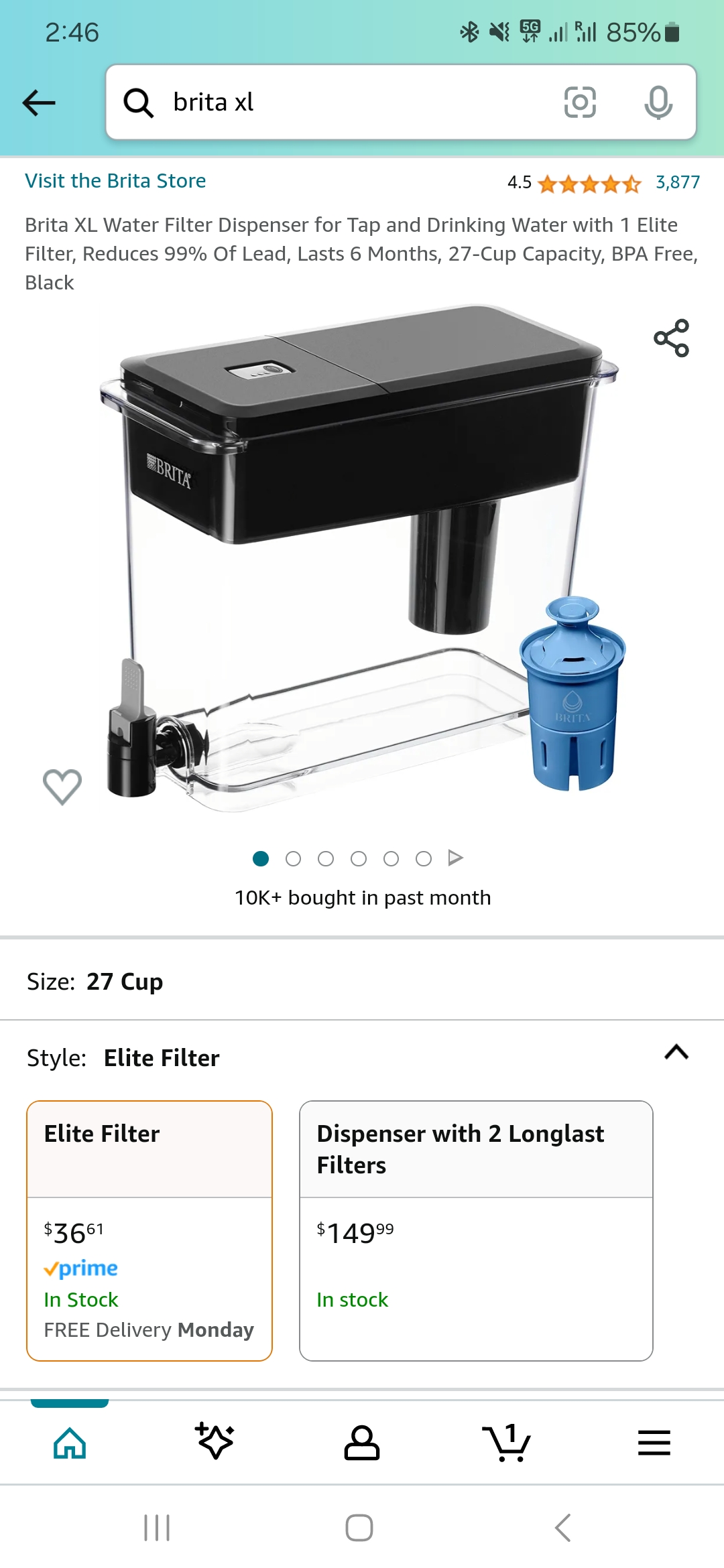 브리타 XL elite filter 1개 포함된 버전입니다.