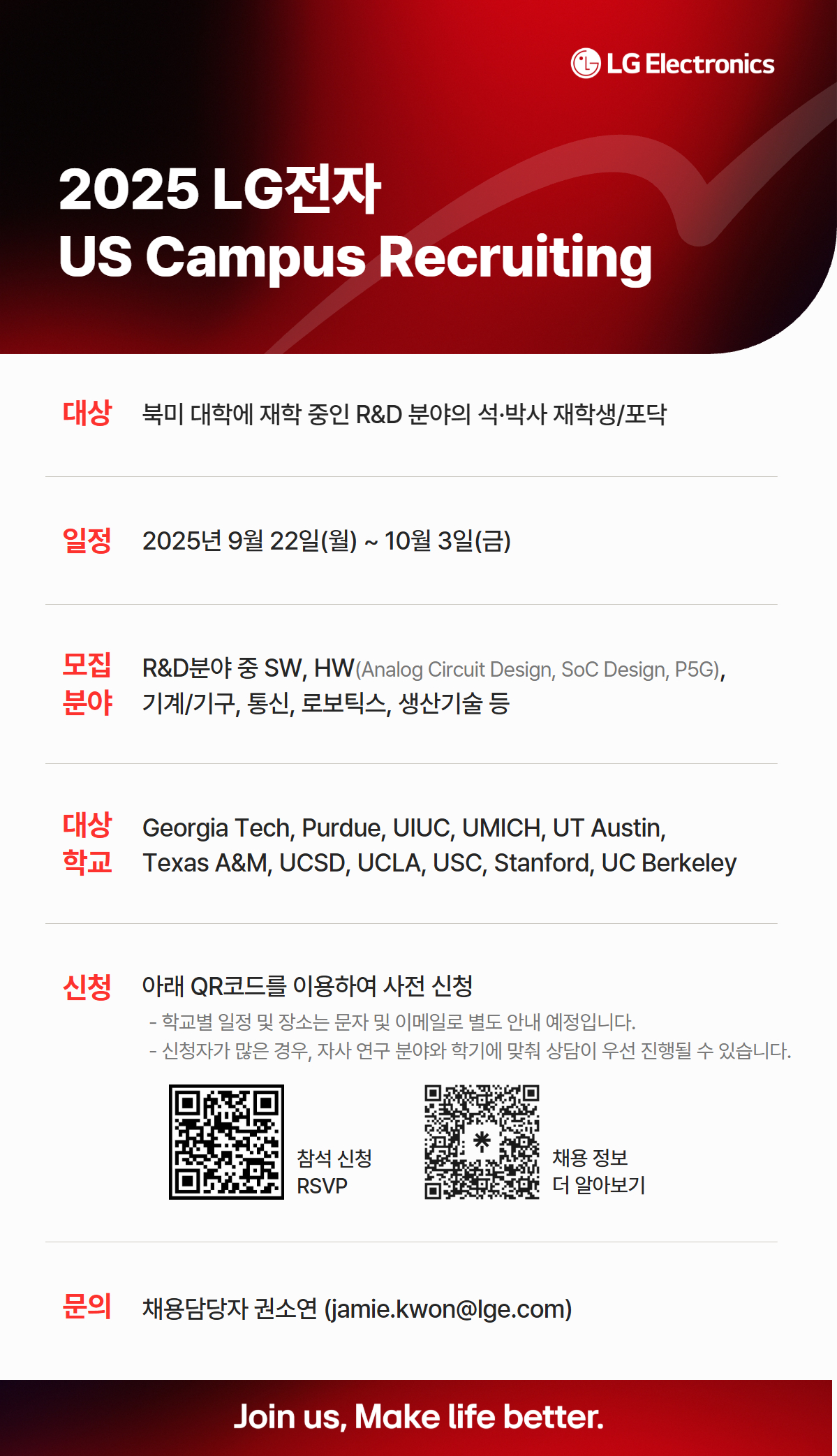[LG전자] 2025 하반기 해외 R&D 석·박사 인재 채용 설명회