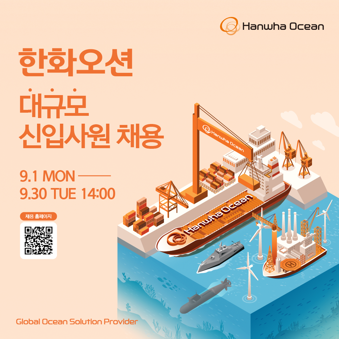 조선·해양·방산 산업을 선도하는 한화오션에서 역대급 규모로 신입사원을 채용합니다!